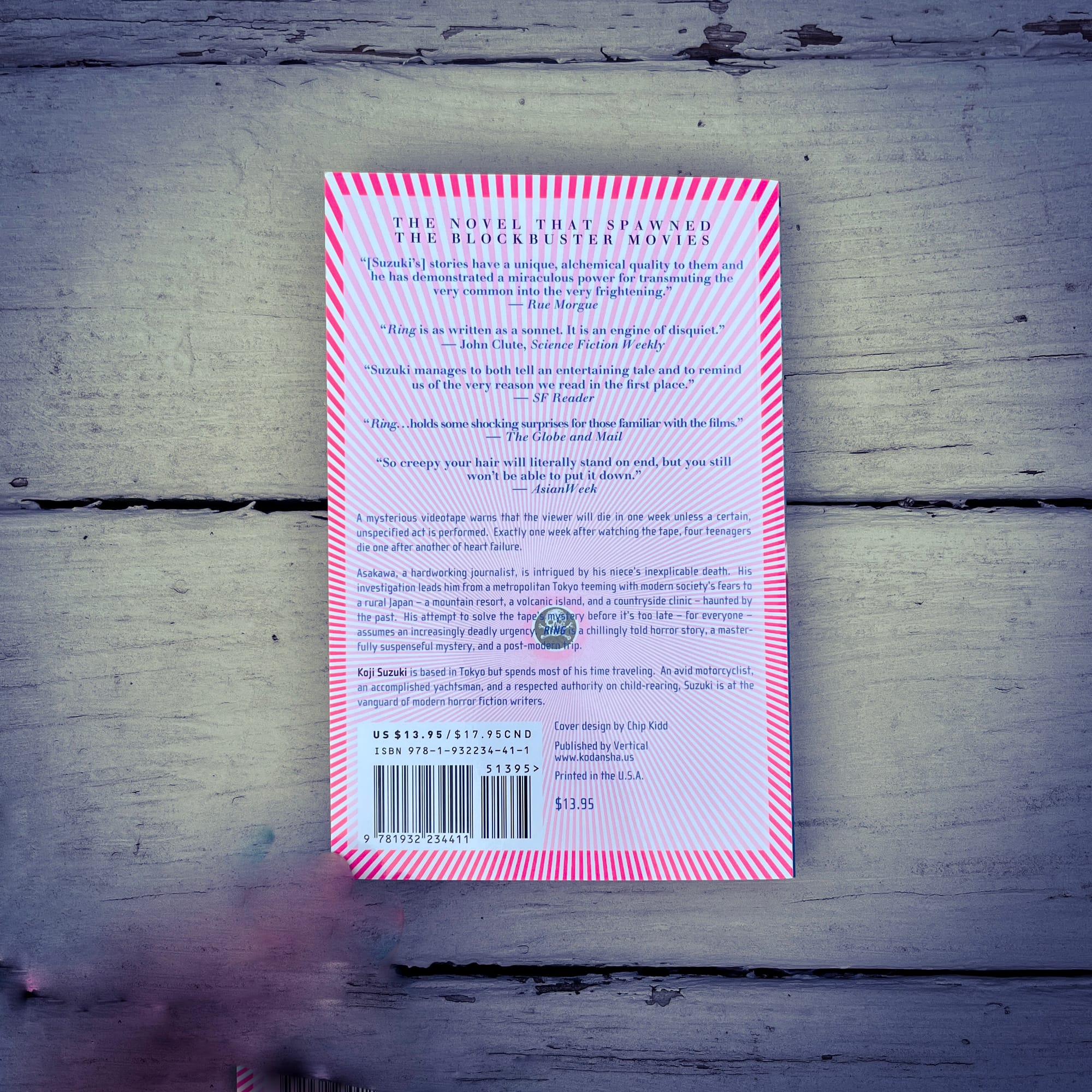 It has been a long time since I have gotten spend time perusing books at a bookstore (yay!). It was at Barnes and Noble where I discovered this book: Ring by Koji Suzuki. It stood out to me because it was the only book with a hot pink cover in the horror section of the store (Seriously, it’s awesome that B&N has a whole section devoted to this genre).